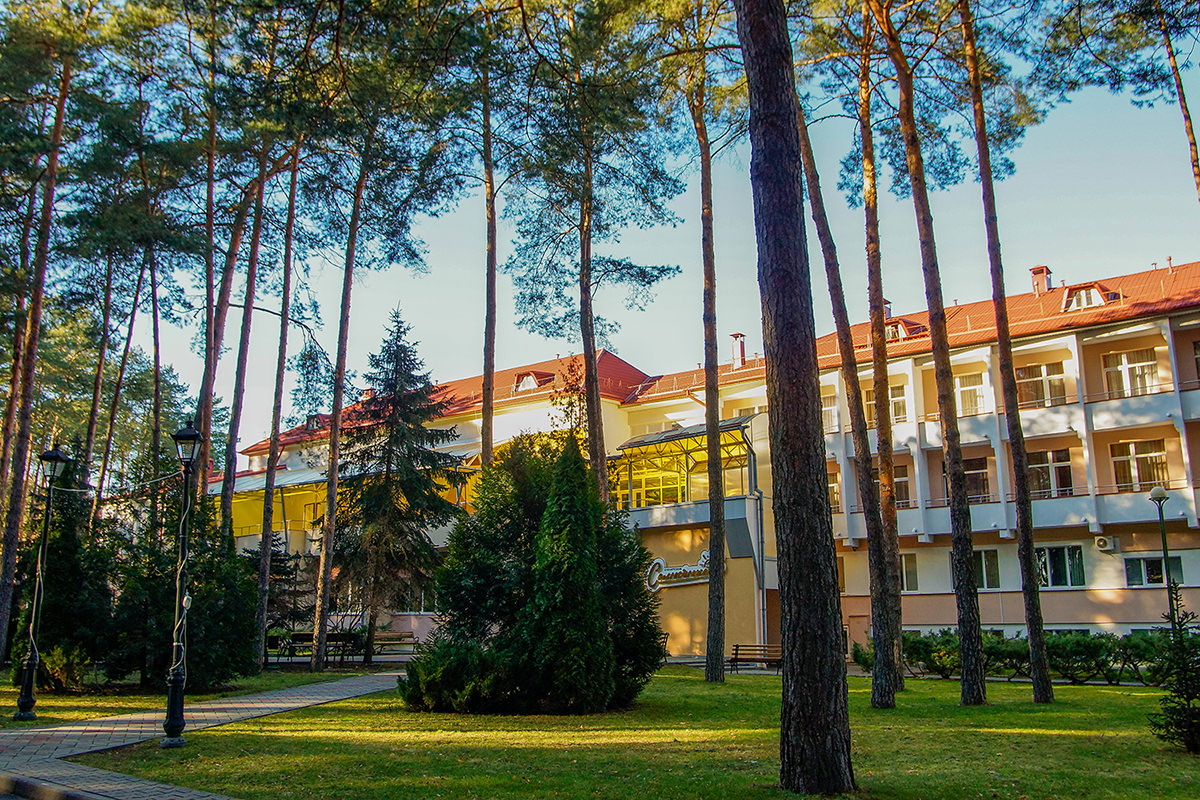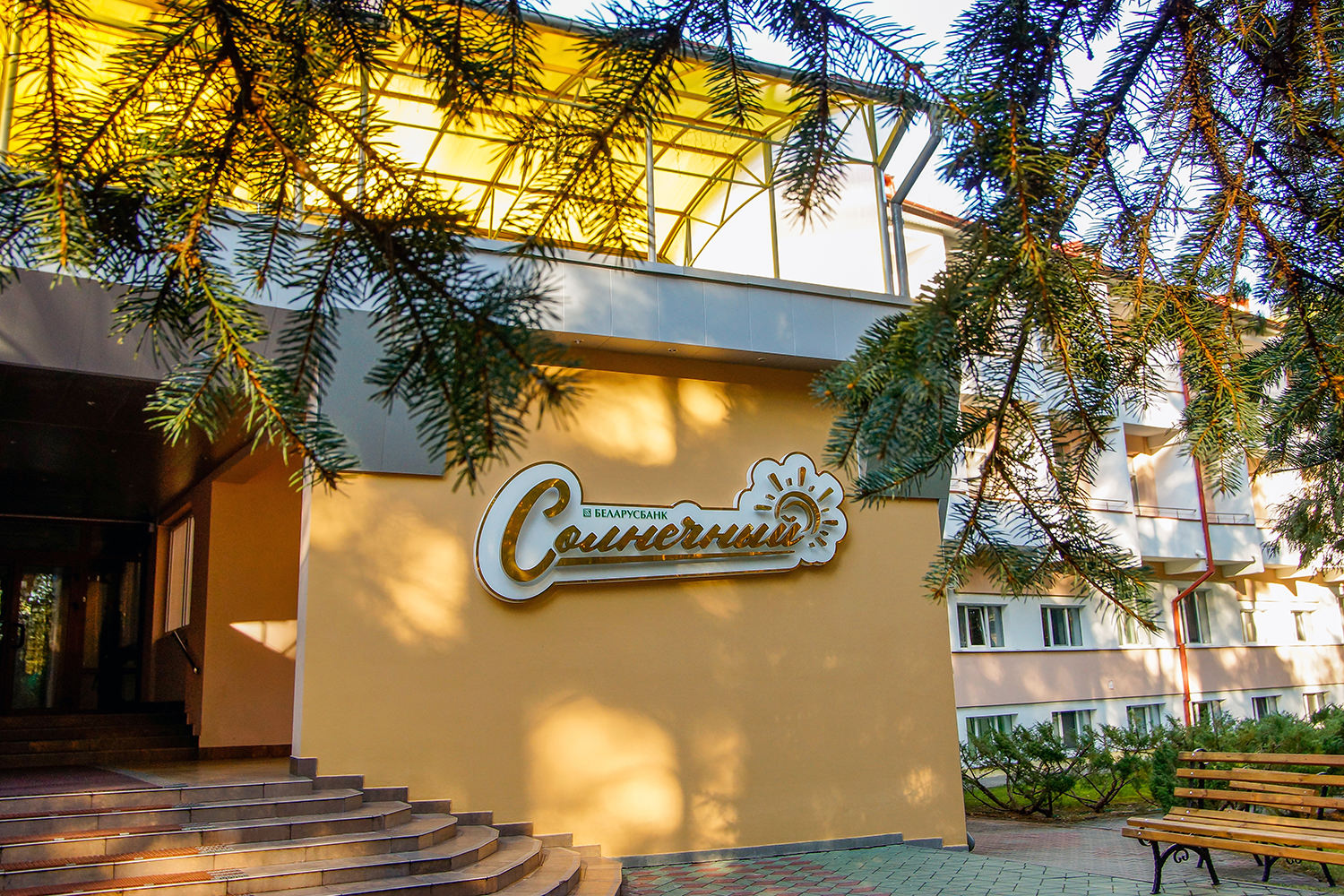 Санаторий «Солнечный», расположился в Брестской области, в лесо-парковой зоне, представляет собой здравницу, состоящую из 3-этажного корпуса и небольших уютных коттеджей, всего санаторий может принять 134 гостя. Добраться можно на поезде, электричке, маршрутке или на рейсовом автобусе. Для путешествующих на личном автомобиле, есть крытая охраняемая бесплатная парковка. Территория санатория с большим количеством зеленых насаждений, обустроена профессиональным ландшафтным дизайнером, прогуливаясь по красивым дорожкам и тропинкам нашего парка, среди сосен, кустарников, деревьев и цветов вы сможете вернуться в детство, повстречав немало сказочных персонажей. Профессиональный дизайн санатория, отменный сервис сделают ваш отдых более комфортным. В номерном фонде представлены: люксы, полулюксы и стандартные номера, оборудованные добротной современной мебелью. В каждом номере есть телевизор, электрочайник и душевая кабинка. К услугам гостей отличная прачечная. Санаторий предоставляет возможность своим постояльцам отдохнуть в банном комплексе или финской сауне. Качественное медицинское лечение, интересные экскурсии – только небольшой перечень ваших возможностей во время отдыха в оздоровительном комплексе. Среди других предлагаемых развлечений здравницы: прокат спортивного инвентаря, библиотека, просмотр кинофильмов в уютном кинотеатре, танцевальная площадка. Вы сможете поиграть в настольный теннис, волейбол и футбол, покататься на велосипедах. И зимой, и летом к вашим услугам крытые залы для игры в теннис, занятий фитнесом, тренажерный зал. В санатории созданы все условия для пребывания с детьми. Ваши дети смогут не только отдохнуть, но и принять полный необходимый курс лечения. Имеется детская комната с воспитателем, а также детская площадка. Дети принимаются с 3 лет. Здравница предлагает отдыхающим пятиразовое сбалансированное питание, по предварительному заказу, питание диетическое, 3 раза в неделю – разгрузочные дни. Санаторий предлагает вам высокий уровень сервиса, развитую инфраструктуру, подходит как для семейного отдыха, так и для деловых людей.